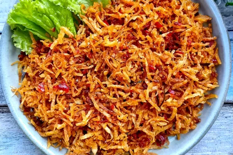 Kering kentang dibuat dari irisan kentang tipis yang digoreng hingga kering, kemudian dimasak dengan bumbu pedas-manis. Bumbunya biasanya terdiri dari cabai halus, bawang merah, bawang putih, gula jawa, sedikit garam, serta segenggam teri atau kacang untuk menambah gurih. Saat bumbu meresap dan kentang berubah renyah seperti kerupuk, rasa pedas-manisnya langsung bikin nagih dan cocok dijadikan stok makanan.