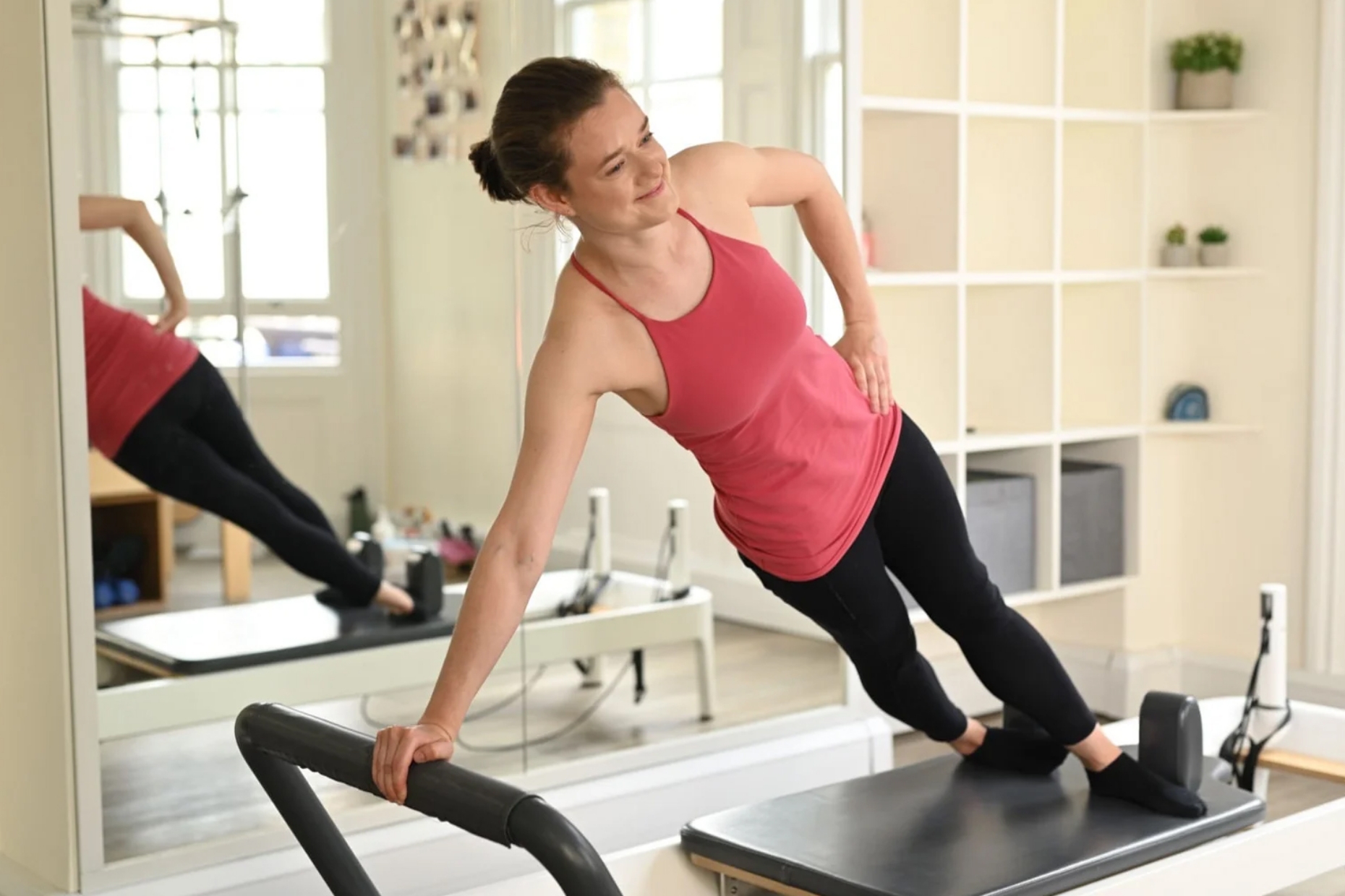 Sebaliknya, pilates menekankan pada penguatan otot inti (core muscles) yaitu otot perut, punggung, dan panggul yang berperan penting dalam menopang postur tubuh. Gerakannya biasanya dilakukan di atas matras atau menggunakan alat khusus seperti Reformer. Fokus utama pilates adalah kontrol gerakan, koordinasi, dan keseimbangan napas. Dengan latihan rutin, pilates membantu tubuh menjadi lebih kuat, ramping, dan seimbang.